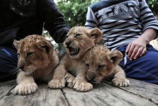 人の手による繁殖で生まれたライオンの赤ちゃんは、1カ月を待たずして母親から引き離されます。