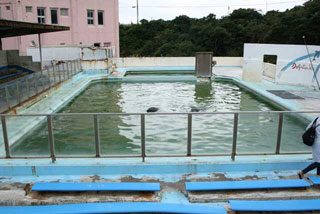 閉園半年前の2017年9月時点でのプールの水は非常に汚く、濁った緑色で、魚が住めないような水質でした。