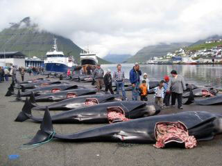 残った仲間たちは肉になるために入り江に追い込まれ、銛でメッタ刺しにされ、血に染まる海の中で惨殺されました。
